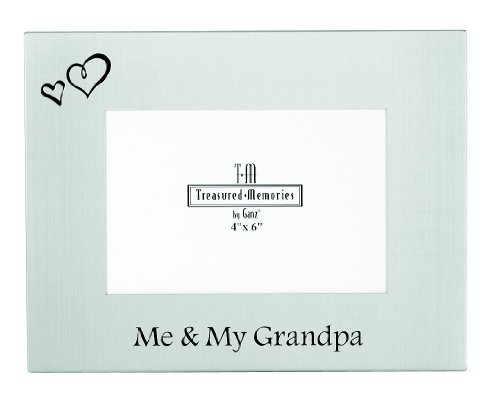 This is the perfect picture frame to display a photograph a grandfather and his beautiful grandchildren! The frame is metallic with a coloring similar to brushed silver. "Me & My Grandpa" is engraved across the bottom, and two hearts grace the upper left hand corner. This simple but striking frame will compliment the decor of any room, no matter what the design or color scheme. The back side of the frame is black and has an easel for easy display on shelf or table. This classic picture frame bears a sweet and meaningful sentiment, and is a gift that any grandfather will be certain to treasure for years to come. Read more...