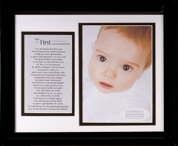 The first great-grandchild touches so many lives. Great-grandparents can celebrate and welcome their new great-grandchild home with this beautifully framed 8x10 keepsake. Features a 5x7 space for the first great-grandchild's photo. Available in black, gold, white or walnut. Coordinates perfectly with our Precious Great-Grandchild Baby Shoe Bank, complete with first penny.Our best-selling Daddy frame- ideal for an office wall or desktop. A great Father's Day frame, gift from baby to Daddy or new father gift. A best-seller! The first great-grandchild touches so many lives. Great-grandparents can celebrate and welcome their new great-grandchild home with this beautifully framed 8x10 keepsake. Features a 5x7 space for the first great-grandchild's photo. Available in black, gold, white or walnut. Coordinates perfectly with our Precious Great-Grandchild Baby Shoe Bank, complete with first penny.Poem reads:The First Great-Grandchild FrameYou will always be the one, who renewed my heart and soul. Holding a new generation, a great-grandparent, my new role. The grandchild I once held, now holds a child all their own. My life so richly blessed, by all the children I have known. So joyful to hold you, and touch your sweet baby skin. It brings back long-held memories, of parenthood once again. So many years have passed, but the love one never forgets. When you hold a part of you, it is as good as life can get. You will make me smile, and delight me as you grow. You will be the sunshine, that leaves my heart aglow. You will always be the FIRST, to give a generation it's start. You will always be the great-grandchild, who renewed and warmed my HEART. ©Teri Harrison. Read more...